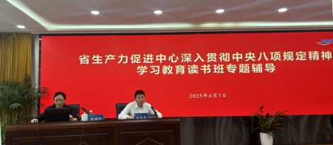 4月7日-9日,根据省科技厅安排部署,省生产力促进中心采取个人自学、分组研学、中心组集中学习和专题辅导等方式,举办了深入贯彻中央八项规定精神学习教育读书班。中心领导班子成员、各部门中层以上干部、各党支部委员、在外借调挂职人员和近三年新入职员工分层分类参加了读书班。