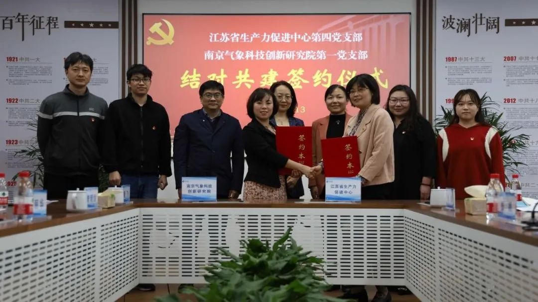 按照中心开展学习贯彻习近平新时代中国特色社会主义思想主题教育要求,近日,江苏省生产力促进中心第四党支部与南京气象科技创新研究院第一党支部结对共建,围绕“党建业务融合发展,聚力科技成果转移转化”,以党建为引领,以业务互促为抓手,开展联学共建。省生产力促进中心副主任、党委委员张颖,南京气象科技创新研究院党委书记闫丽华、党委副书记曾明剑,及共建双方党支部书记和党员代表参加了签约仪式。