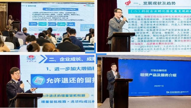 会上,中心科技项目受理审理处介绍了省科技计划体系及创新服务,省高新技术创业服务中心介绍了高质量孵化器建设与发展,昆山市税务局高新区税务分局分享了企业不同生命周期的税费优惠政策,交银金融租赁介绍了租赁产品及服务。
