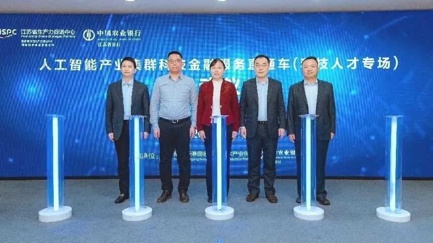 为推动创新链、产业链、资金链、人才链深度融合,充分发挥科技金融赋能作用,促进“科技—产业—金融”良性循环,江苏省生产力促进中心聚焦“1650”现代化产业体系和“51010”战略性新兴产业集群,积极开展科技金融服务。1月19日下午,中心联合中国农业银行江苏省分行在新港国家高新园启动以“人工智能产业集群”为主题的金融服务直通车科技人才专场活动。江苏省生产力促进中心副主任、党委委员张颖,中国农业银行江苏省分行党委委员、副行长曹杰存,南京兴智科技产业发展有限公司副总经理马宁等出席会议并共同上台启动直通车活动。会上,中心科技金融服务处工作人员向参会科技企业推介省科技金融相关政策,中国农业银行介绍了活动专属优惠信贷政策和产品,新港国家高新园人工智能产业企业代表30余人参加活动。