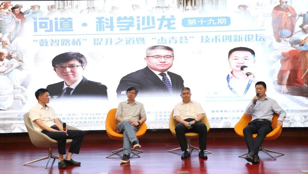 沙龙互动环节,戚湧、熊文、万剑三位专家围绕公路交通行业未来发展、数智技术在公路建设与养护中应用等话题进行了交流互动,大家畅所欲言、集思广益,加深了与会者对数智路桥的理解,对与会者大有启发。