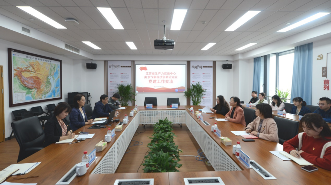 会上,中心第四党支部书记杨艳红介绍了中心“33310”产业集成创新服务体系与十大品牌业务建设情况,并围绕气象科研成果转移转化提出了加强合作的建议。南京气象科技创新研究院党委书记闫丽华及研究院第一党支部书记宋娟分别介绍了研究院建设及党建工作开展情况、第一党支部党建业务融合经验做法。闫丽华书记表示,科技创新是研究院高质量发展关键所在,希望能与省生产力促进中心携手共建,在高能级平台打造、高层次人才培育、高水平成果转化等多个方面开展更深更实的合作。中心副主任张颖主任表示,双方有较好的合作基础,希望后续加强三方面的共建,一是加强活动共建,共同策划、开展主题党日、党课等特色党建活动,共同学习党的理论知识,进行思想交流,切实推动支部互学互鉴,促进学习型党支部建设,助推党建工作整体跃升;二是加强服务共建,围绕服务对象需求,落实党中央和省委关于大兴调查研究的要求,共同走进服务对象,推动气象科技成果落地转化;三是加强能力共建,通过双方共同努力和紧密合作,在党建和科研相融合方面先行先试,在结对共建方面树立榜样,共同提升党建业务融合发展的能力和水平、收获更多成果。