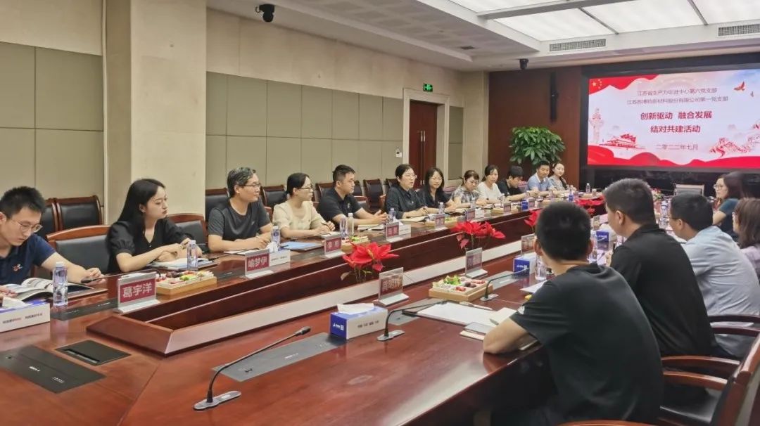 为进一步落实中心党委“坚持党建引领,突出集成创新服务特色,提升团队作战能力,完善自主创新服务体系”的要求,更好在履行“争当表率、争做示范、走在前列”的光荣使命中彰显科技服务担当,7月29日上午,江苏省生产力促进中心第六党支部与江苏苏博特新材料股份有限公司第一党支部开展“创新驱动 融合发展”结对共建活动。苏博特高性能土木工程材料国家重点实验室首席科学家冉千平参加结对共建活动。